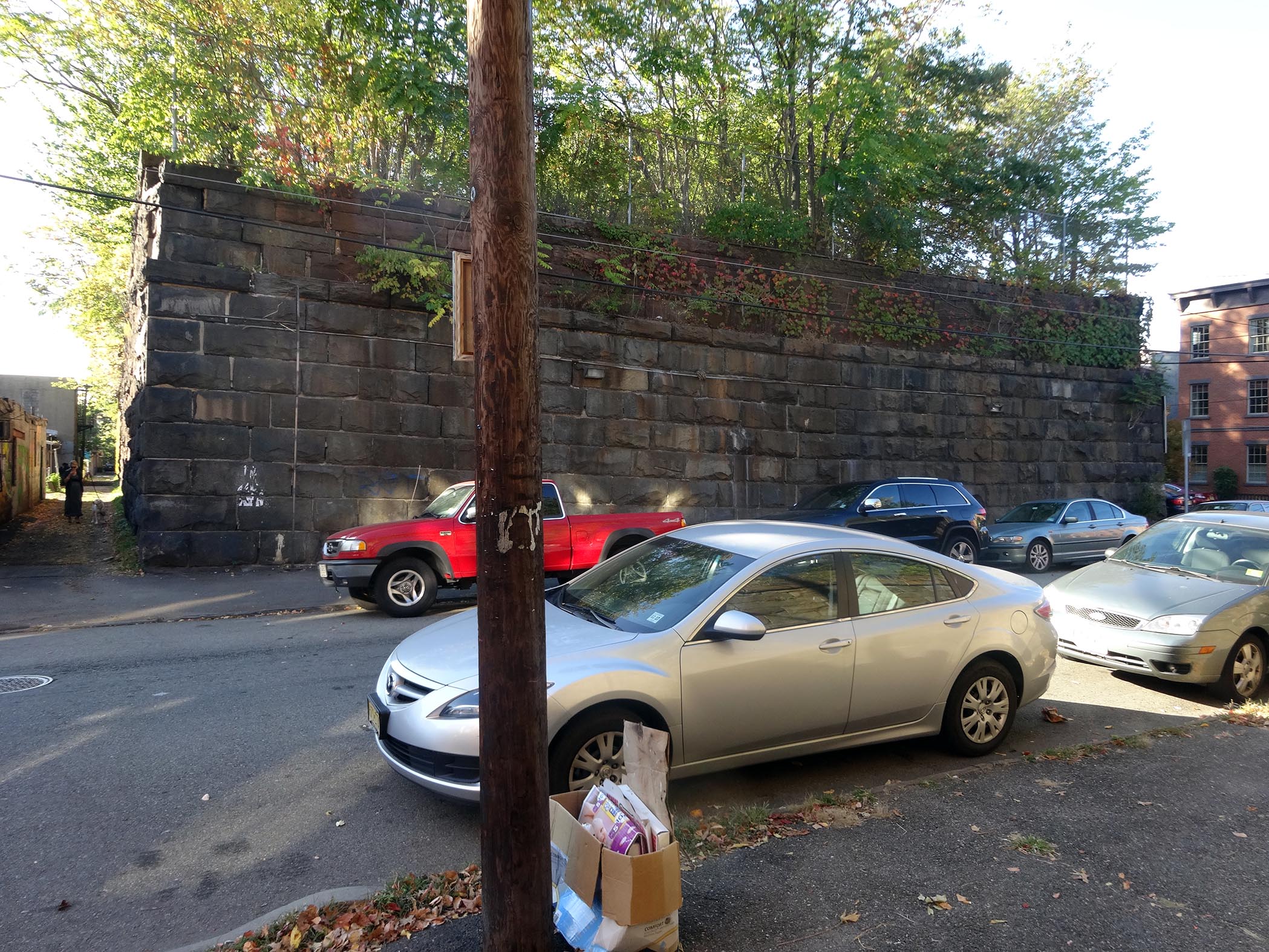(research.) When I first heard about the Harsimus Stem Embankment in Jersey City, also known simply as “the Embankment,” it was caught in legal disputes about its ownership. I’m not sure if that’s settled yet, but the value of joining the fight to preserve it seems obvious to me. It’s weighty. When I was in New York in October 2013, I traveled across the Hudson with my friend Annik La Farge to discover the railroad segment that advocates envision repurposed as “a habitat-oriented linear park.” Even though the bridges over all the cross-streets have already been removed, the Embankment is an astounding structure running six blocks along Sixth Street. It lifts gently from just a few feet above street level to over twenty at its western end. >> Ryan Gravel