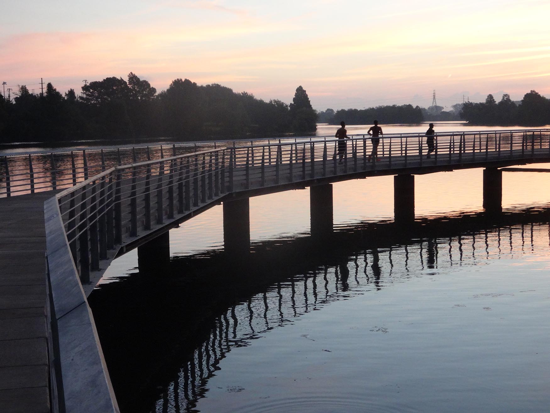 (research.) I’ve been to Austin a few times in the last year or so, and I love exploring the trails around Lady Bird Lake. The coolest part of the 10-mile loop is the Boardwalk, which just opened last summer. So when I was there in September I got a bike from the city’s bikeshare and took an early morning ride down the hill from East Austin. Because of some ornery property owners and the complexity of a highway overpass, the last 1.2 miles of the trail was built out over the water. It’s kind of a crazy thing, but it’s also an amazing experience. >> Ryan Gravel