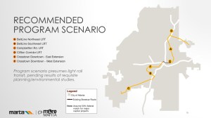 (ideas.) With advance apologies and love for my hard-working brothers and sisters in transportation planning, the more I look at the More MARTA plan, the madder and sicker I get. Concocted in some backroom laboratory, this is no plan for a great future city. What does it add up to? What kind of city will it create? On the heels of the groundbreaking Atlanta City Design, which aspired to move Atlanta toward Dr. King’s Beloved Community – what is this nasty hairball of candy-colored lines that somebody smeared across a map of the city?