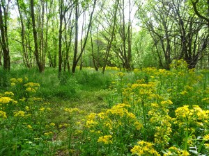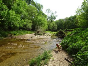 On that bright Spring day, however, we put the site’s dark history behind us – consoled by the restorative power of nature and buoyed by the sheer beauty of the forest. Down the rolling hills and hollows and into the floodplain we went, discovering dancing sunlight illuminating a wooded field of yellow wildflowers and luminous green forest grass. In a few more steps we reached the sandy banks of Intrenchment Creek – the main reason I had made this trip in the first place.
